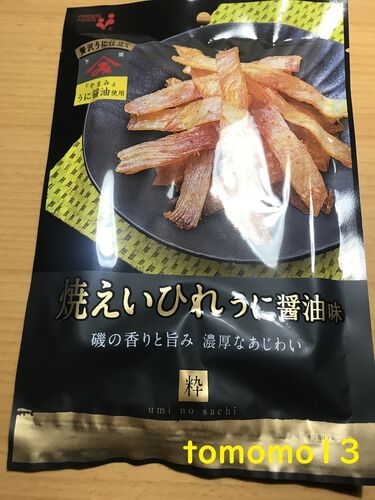 tomomo13のブログ。井上食品『umi no sachi 粋 焼えいひれ うに醤油味』の口コミです。