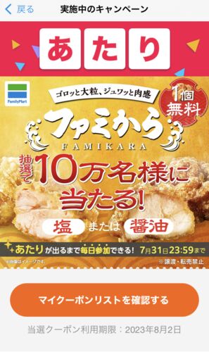 tomomo13のブログ。ファミリーマート『ファミから 塩』の当選報告と口コミです。