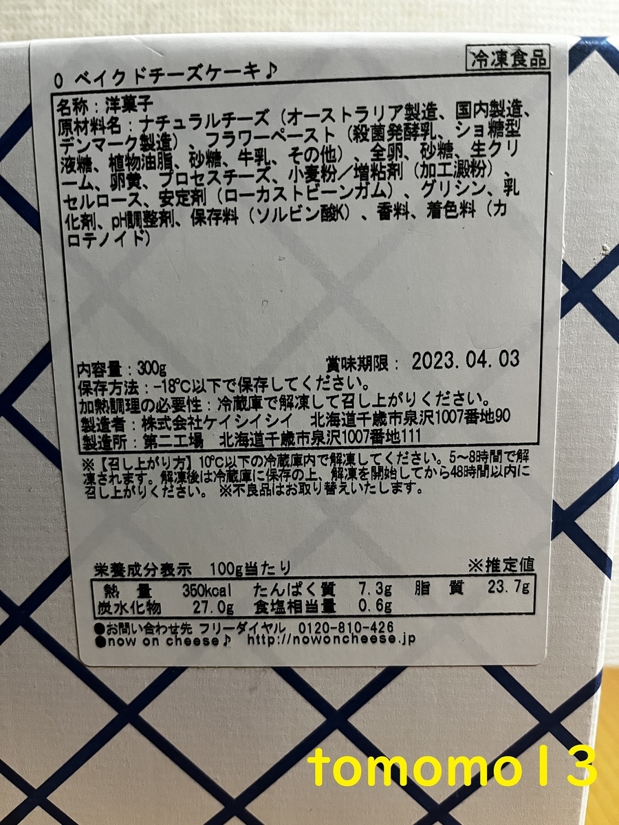 Now on Cheese♪(ナウオンチーズ)『ベイクドチーズケーキ』です。