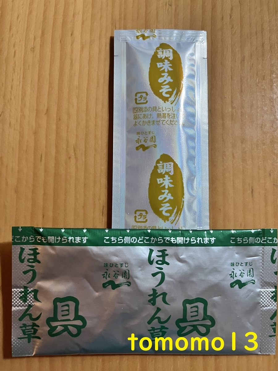 今回はほうれん草ってことで、個包装になっているほうれん草の具と調理味噌。