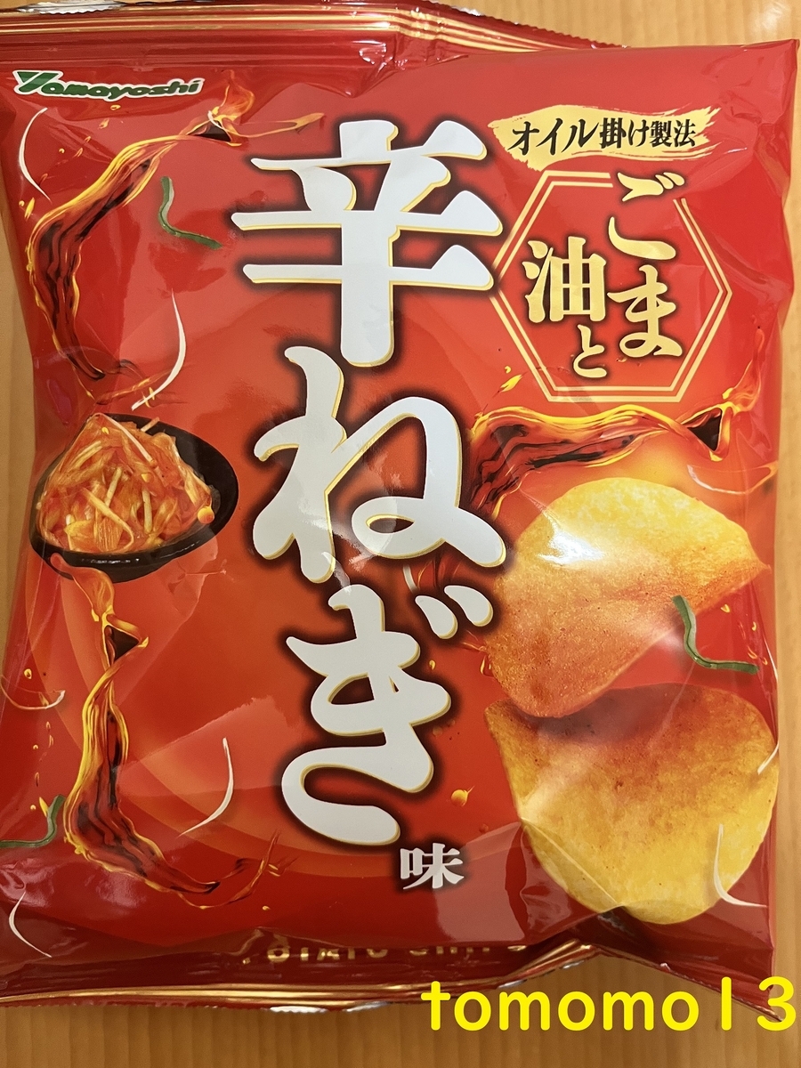 山芳製菓『ポテトチップス ごま油と辛ねぎ味』です。