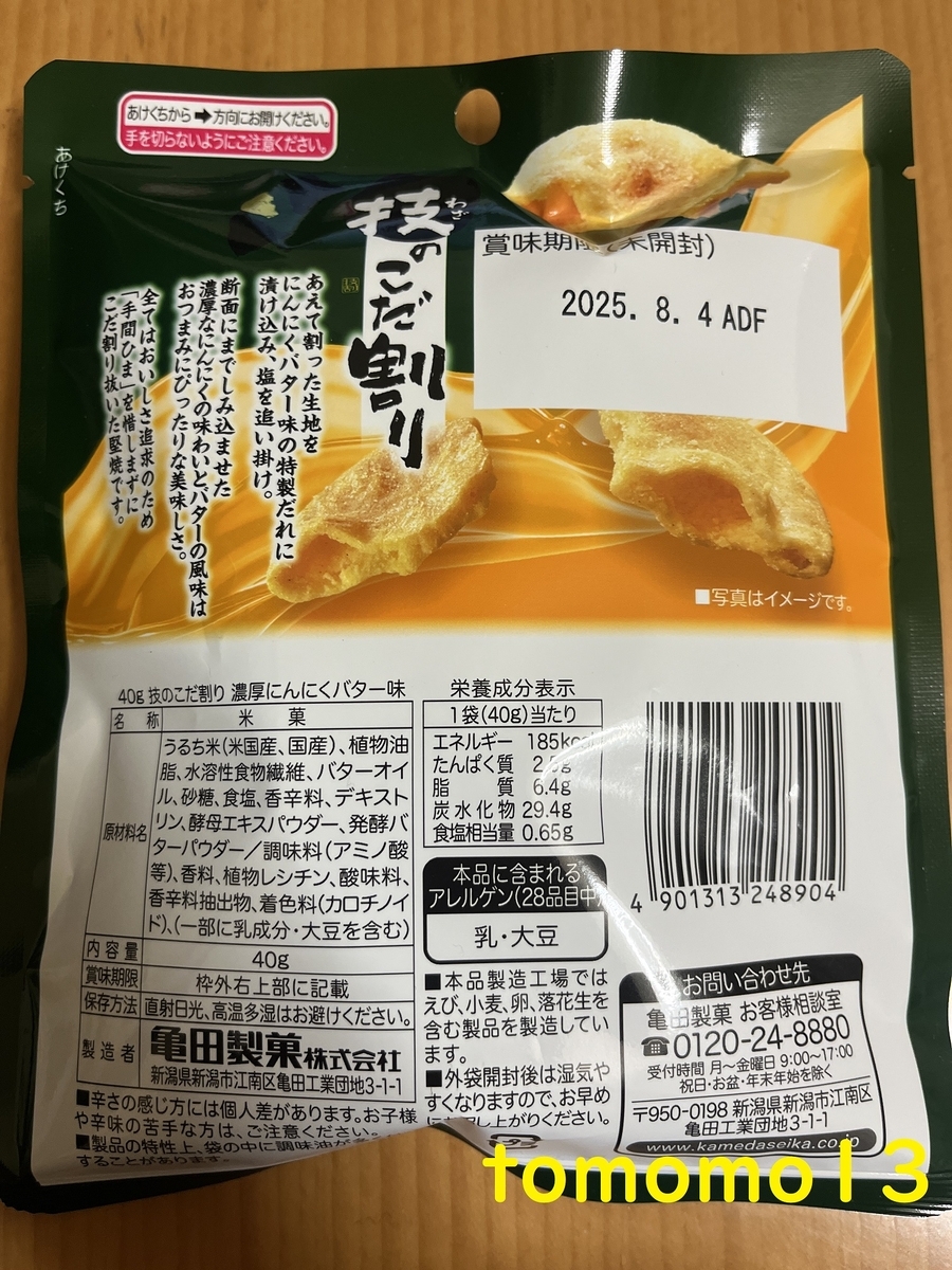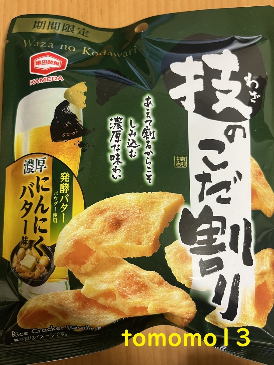 亀田製菓『技のこだ割り 濃厚にんにくバター味』です。