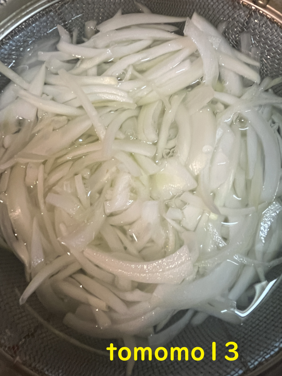 玉葱をスライスして水に10~15分程度さらしておきます。