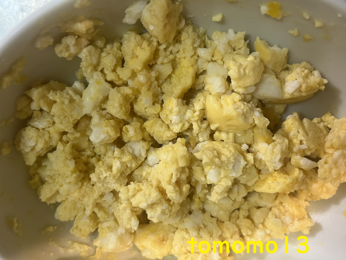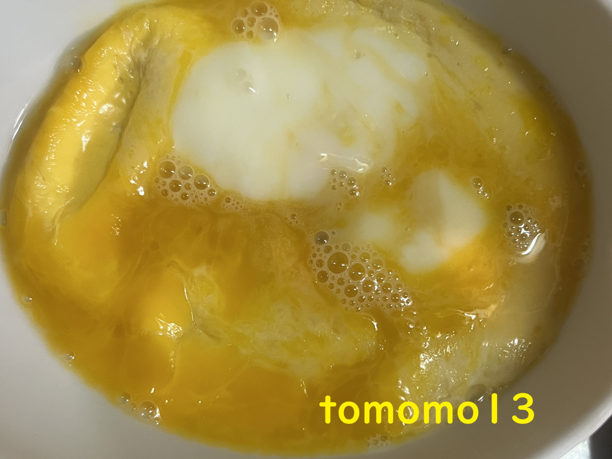 ほとんど固まってないけど、とりあえず箸でぐちゃぐちゃにします。