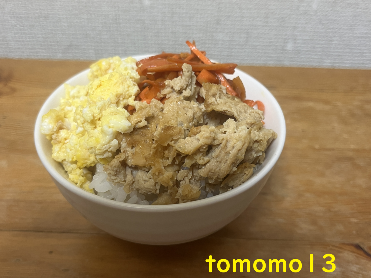 ※人参の代わりに青菜、もしくは野菜なしの二色丼でもOK。